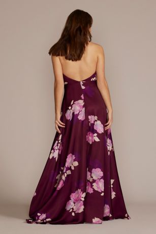 Floor Length Floral Print Halter A Line With Slit David S Bridal